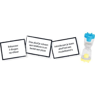 De scheidsrechter draait de zandloper om en leest de kaart voor. Elke kaart bevat 2 uitdagingen en de scheidsrechter bepaalt welke kant in een ronde wordt gebruikt.