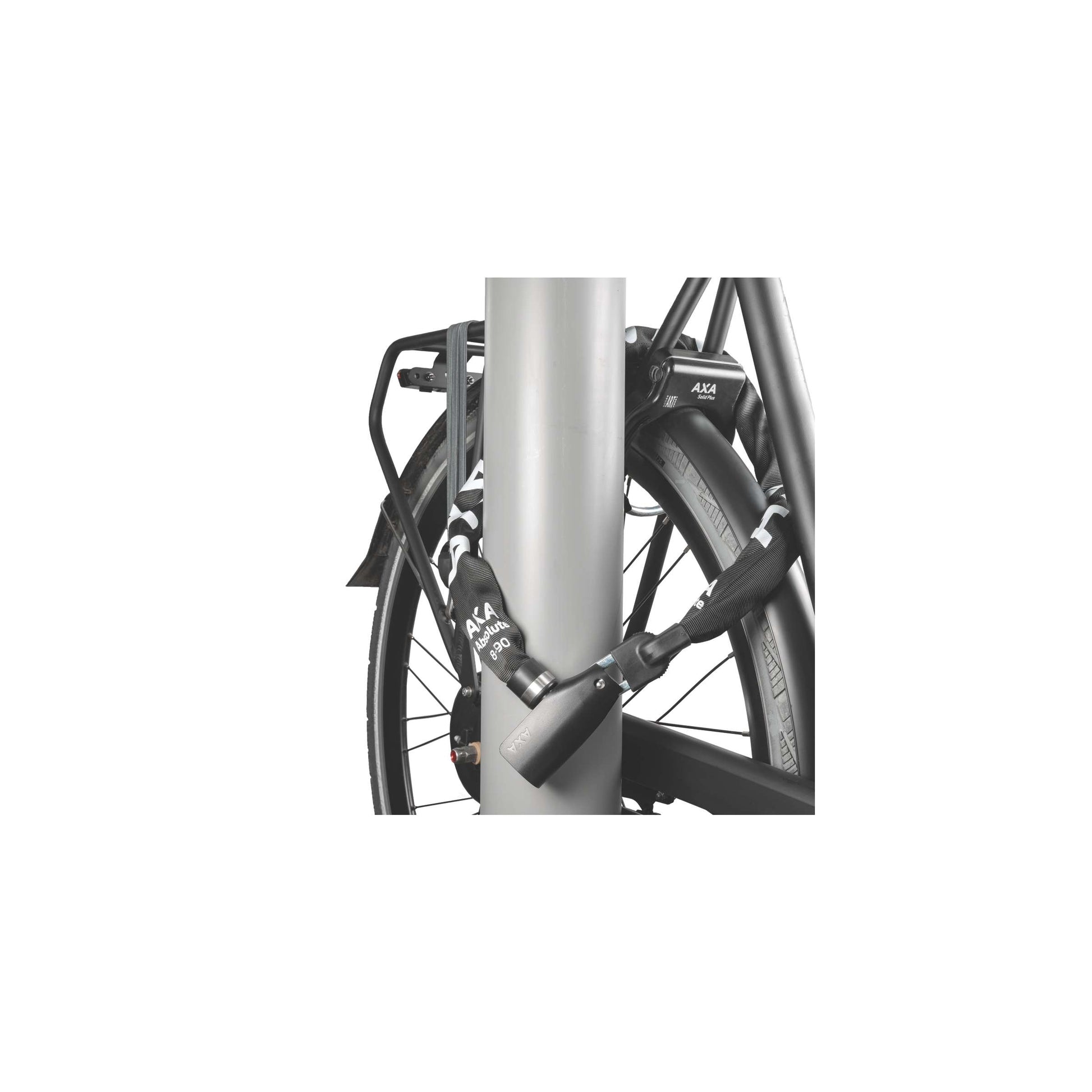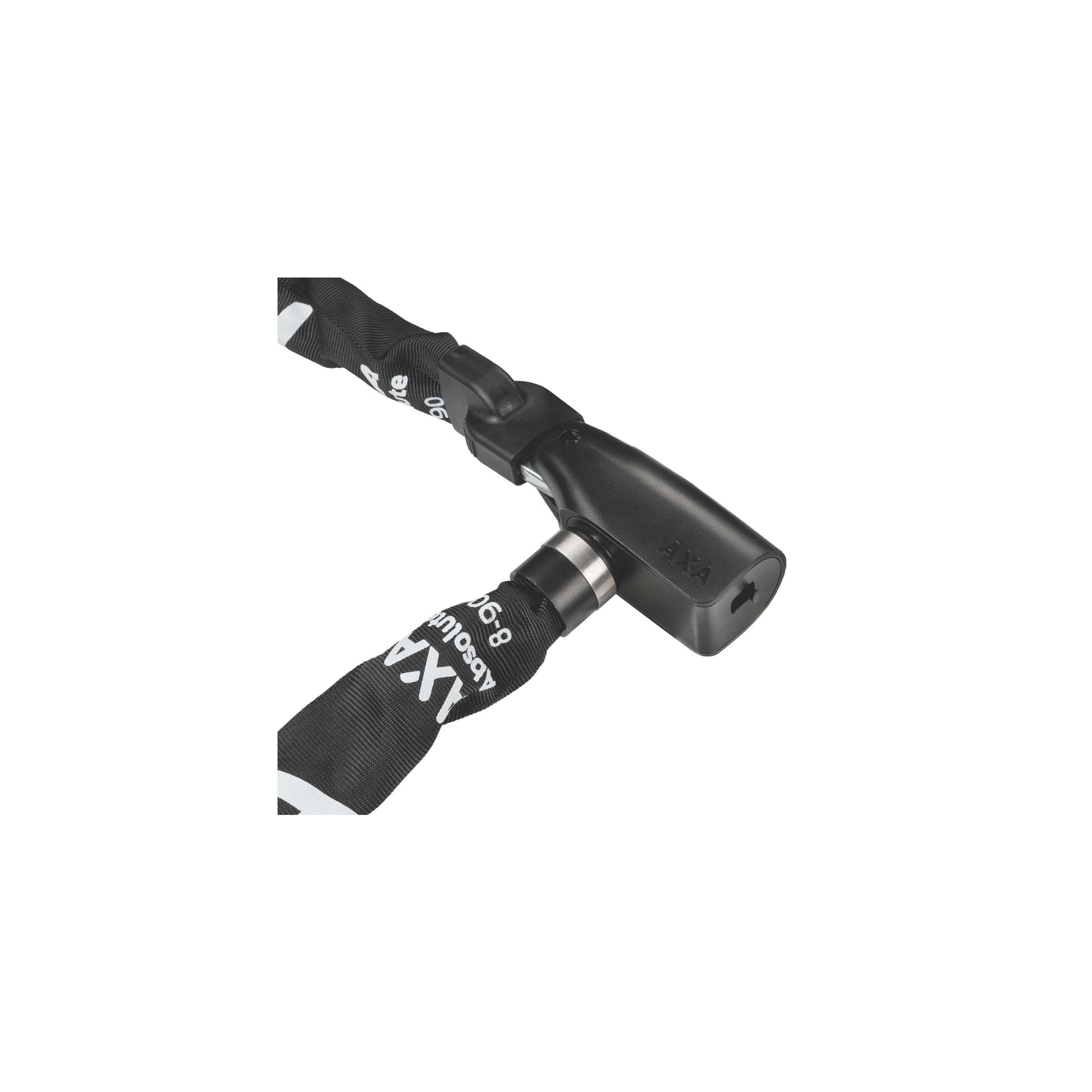 "De AXA Absolute 8-90 is een hoogwaardig kettingslot dat speciaal is ontwikkeld voor het beveiligen van fietsen tijdens kort tot middellang parkeren of als tweede slot. Het slot heeft een handige geïntegreerde slotkop met automatische click-in functie, waardoor de sleutel niet gedraaid hoeft te worden om het slot te sluiten. De cilinder is beschermd met een afdekkap, waardoor vocht en vuil geen directe toegang hebben en de duurzaamheid van het slot wordt bevorderd. De sterke zwarte polyester hoes beschermt de fiets tegen beschadigingen. Mocht je de fietssleutel kwijtraken, dan is dat geen probleem, aangezien je via de AXA online sleutelservice een extra sleutel kunt bestellen die binnen enkele dagen wordt geleverd. De ketting heeft chique RVS details en is een waardevolle toevoeging aan elke fiets. De Absolute is 90 cm lang, de schakels zijn gemaakt van gehard staal en hebben een diameter van 8 mm." "Specificaties: - Kleur: zwart - Materiaal: metaal - Lengte: 90cm - Model: kettingslot - Aantal sleutels: 2 - Veiligheid: 9 - Keurmerk: Varefakta (DK)"