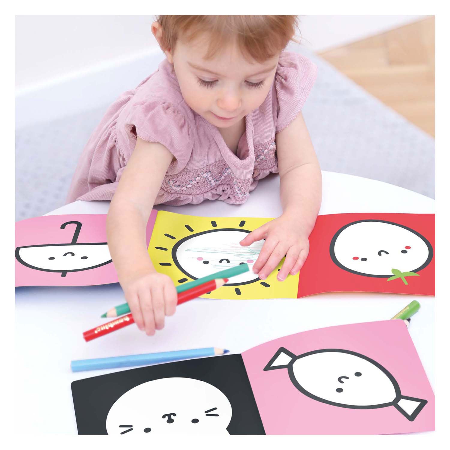 De kleurpotloden staan klaar - het is tijd voor een kleuravontuur! Deze creatieve set bevat 2 lange (95 cm!) accordeonboeken met 23 eenvoudige illustraties met dikke contouren, die jonge kinderen zullen aanmoedigen om hun kleurpotloden op te pakken en hun eerste kleurpogingen te wagen. Laat je kind zien wat een kleurpotlood is en welke streep het maakt. Laat ze het kleurpotlood in hun vuist houden met vegende handbewegingen, in de kleur die ze zelf kiezen. Dit is een natuurlijke kennismaking met tekenen. In deze fase is plezier in creatief bezig zijn het belangrijkste. Het benoemen van dieren, kleuren en details in afbeeldingen is een extra aspect van het spel. De Looong Kleurboeken-serie bevat 10 sets voor kinderen van 18 maanden tot 5 jaar. Dankzij deze boeken kunnen kinderen geleidelijk de motorische vaardigheden ontwikkelen die ze later nodig hebben om te leren schrijven. In de collectie vind je ook 4 sets met leuke kleurboeken en activiteiten gerelateerd aan onderwerpen waar kinderen dol op zijn. Kenmerken • Helpt bij het ontwikkelen van fijne motoriek en creativiteit • Leer kinderen concentratie en doorzettingsvermogen • Helpt bij het leren van de juiste schrijfhouding • Helpt peuters nieuwe woorden te leren • Illustraties en productopmaak zijn aangepast aan jonge kinderen • Handige accordeonvorm maakt het perfect voor plezier onderweg en op reis