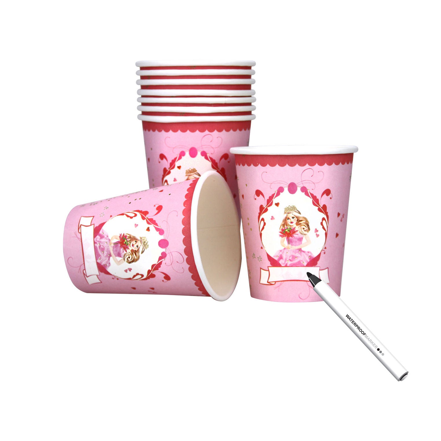 Deze bekers zijn ideaal voor jouw prinsessen feestje. Dankzij de prinsessen-print zien ze er super mooi uit! Op iedere beker is ruimte om je naam op te schrijven. Zo weet je precies welke beker van jou is. Handig! Inhoud per beker: 250 milliliter.