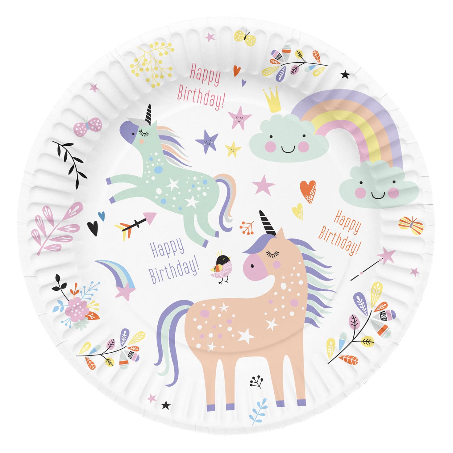 Borden Unicorns & Rainbows 23cm - 8 stuks. Inhoud: 8 borden. Kleur: Meerkleurig. Het bord heeft een diameter van 23 cm en is gemaakt van FSC®-gecertificeerd papier.