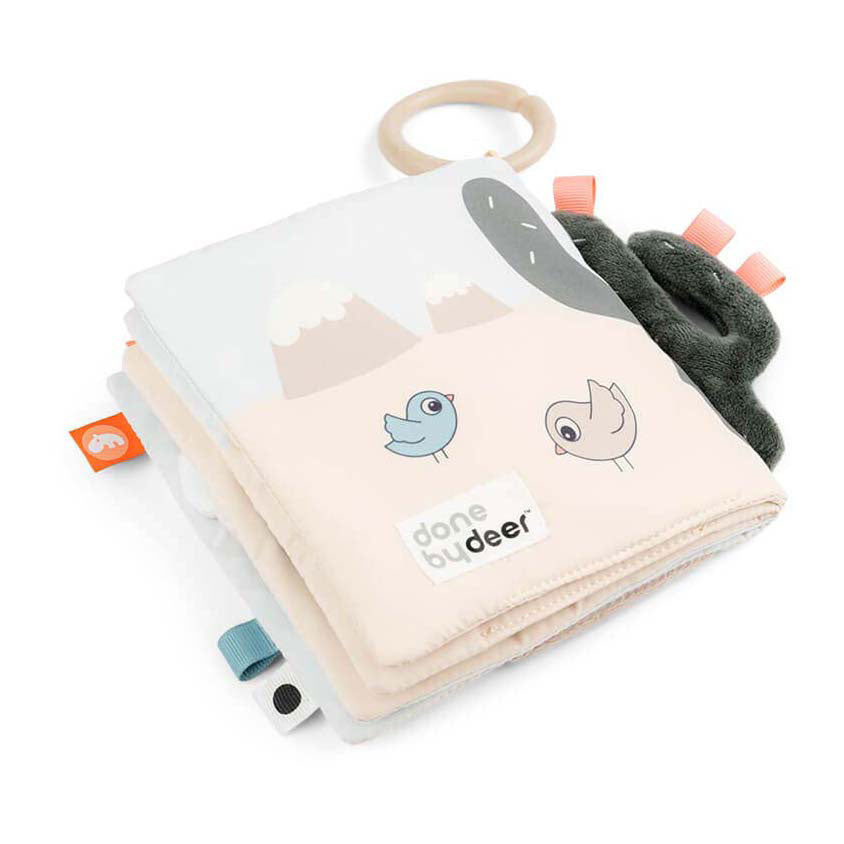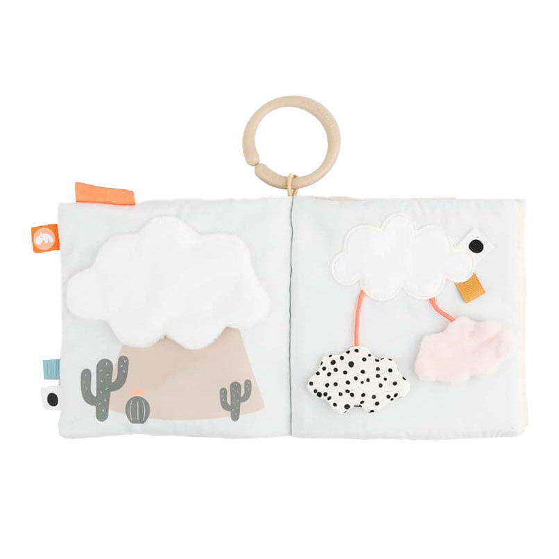 Lalee en Birdee nodigen je baby uit om het leuke activiteitenboek te ontdekken. Het zachte babyboek zit vol stimulerende functies die perfect zijn voor nieuwsgierige kleine geesten. Onze hertenvriend Lalee speelt verstoppertje onder de grote wolk bij de besneeuwde bergtop terwijl kleine vogels zich haasten om mee te doen. Een babyspiegel verstopt zich onder een grote, groene cactus en een bijtring springt uit het zakje waar een andere hertenvriend Antee op het punt staat om te lunchen. Kalme, zanderige kleuren worden gecombineerd met stoffig cactusgroen en een vleugje fris koraalrood. Gebruik de speelgoedlink om het babyboek te bevestigen aan een speelmat voor op de buik of aan een kinderwagen, kinderwagen of autostoel voor entertainment. Kenmerken • Het Lalee-activiteitenboek met een mix van rustige, zanderige kleuren gecombineerd met stoffig groen en een vleugje koraalrood zit vol met leuke en stimulerende elementen die je baby uitnodigen om samen met Lalee, Birdie en Antee op avontuur te gaan • De vele sensorische oppervlakken, knisperende geluiden, verschillende texturen en verrassende elementen voeden de fantasie en creativiteit van je kind en houden ze bezig • Een klein bijtringetje verborgen in een zakje in het boek is perfect tegen jeukend tandvlees • De babyspiegel verborgen onder een grote, groene cactus laat je kind zijn of haar spiegelbeeld ontdekken • Gebruik de speelgoedkoppeling om het babyboek te bevestigen aan een speelmat voor op de buik of aan een autostoel voor entertainment onderweg Aanbevolen leeftijd: 0+ Ik ben zo groot: 19,5 x 14,5 cm Onderhoud Afnemen met een zachte, vochtige doek.