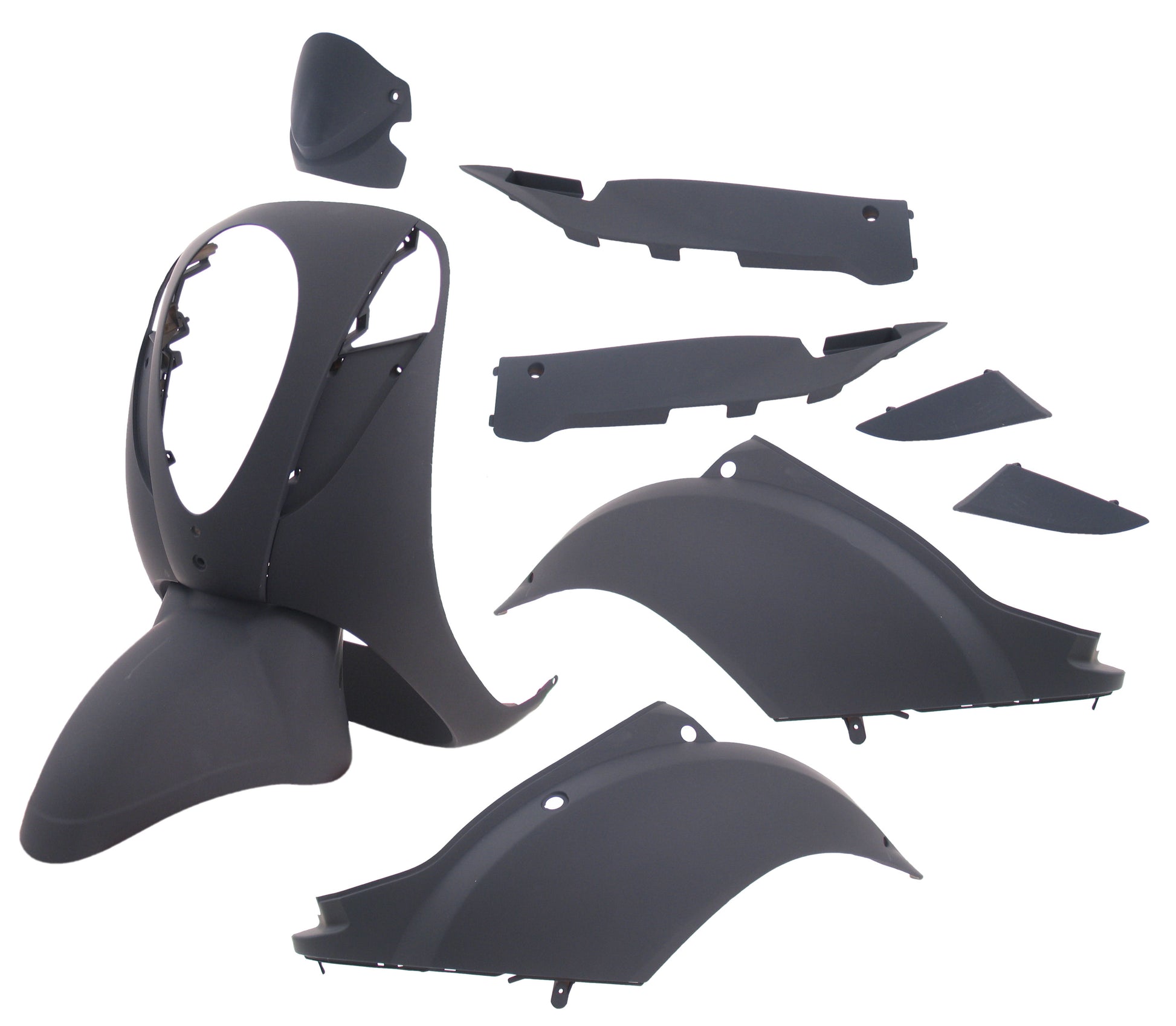 Rechter voorscherm tussenkap, vergelijkbaar geplaatst als de linker tussenkap Let op: deze set bevat alleen de gelakte buitenkapdelen. Binnenkapdelen zoals de treeplank en het beenschild zijn niet inbegrepen en moeten indien nodig apart aangeschaft worden. Originele stickers en bevestigingsmaterialen zoals parkers en speednuts worden niet meegeleverd. Aanvullende logo's voor de stuurkap en de zijschermen zijn apart verkrijgbaar, wat een leuke toevoeging kan zijn.