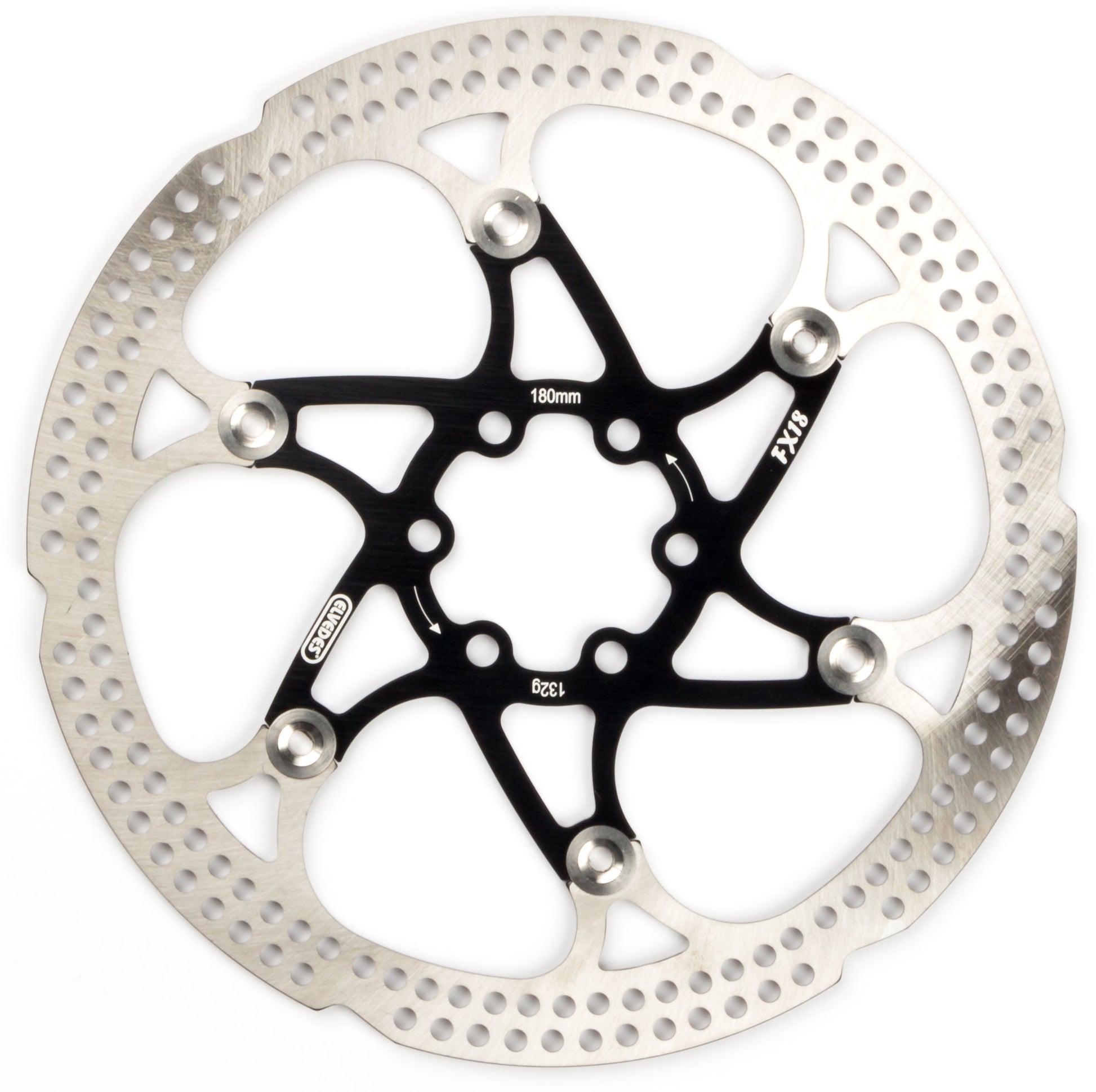 De FX18 Floating Rotor heeft een diameter van 180 mm en weegt ongeveer 132 gram. Het is gemaakt van staal en heeft 6 gaats bevestiging. De remschijf wordt geleverd inclusief 6 remschijfboutjes. De kleur van de remschijf is zilver/zwart.