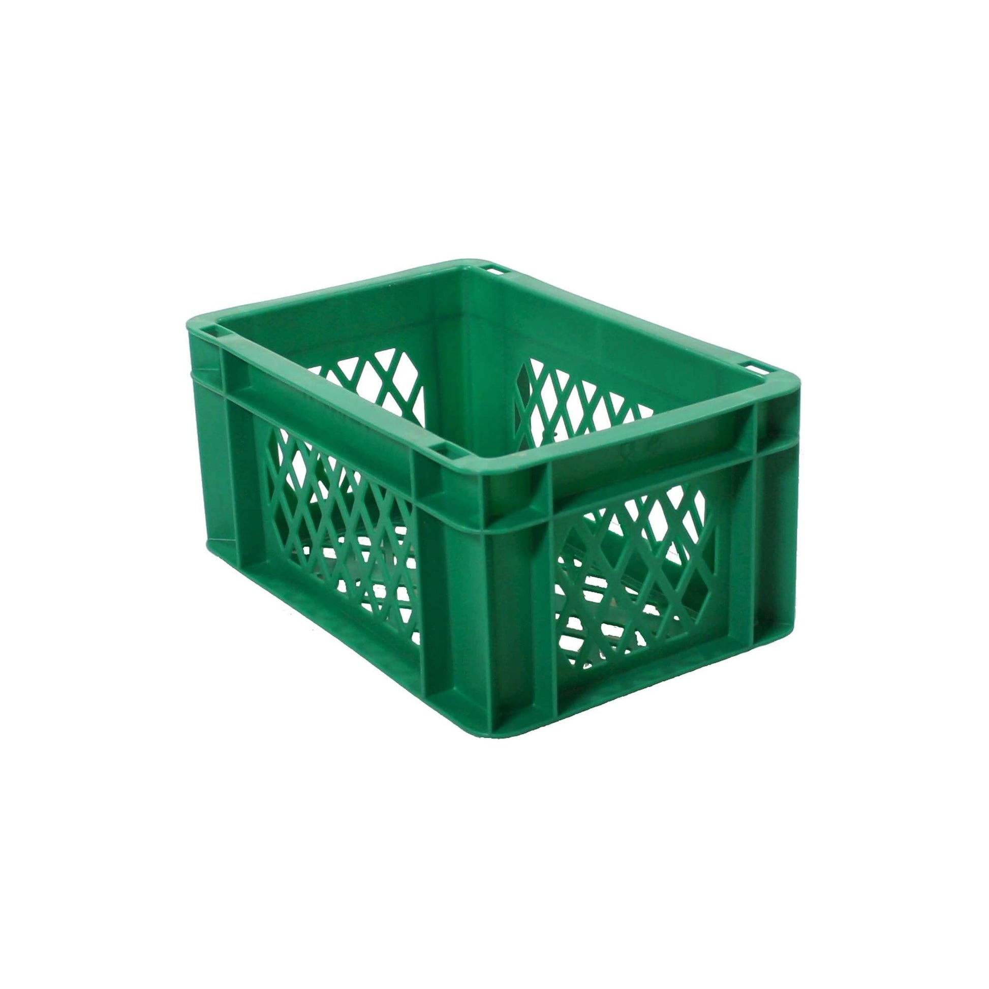 Een kleine groene kunststof transport- en bagagekrat, perfect voor het dragen van kleine voorwerpen. Deze krat heeft een buitenmaat van 300x200x145 en een binnenmaat van 252x152x133. Het is duurzaam en stevig, waardoor het ideaal is voor verschillende toepassingen.