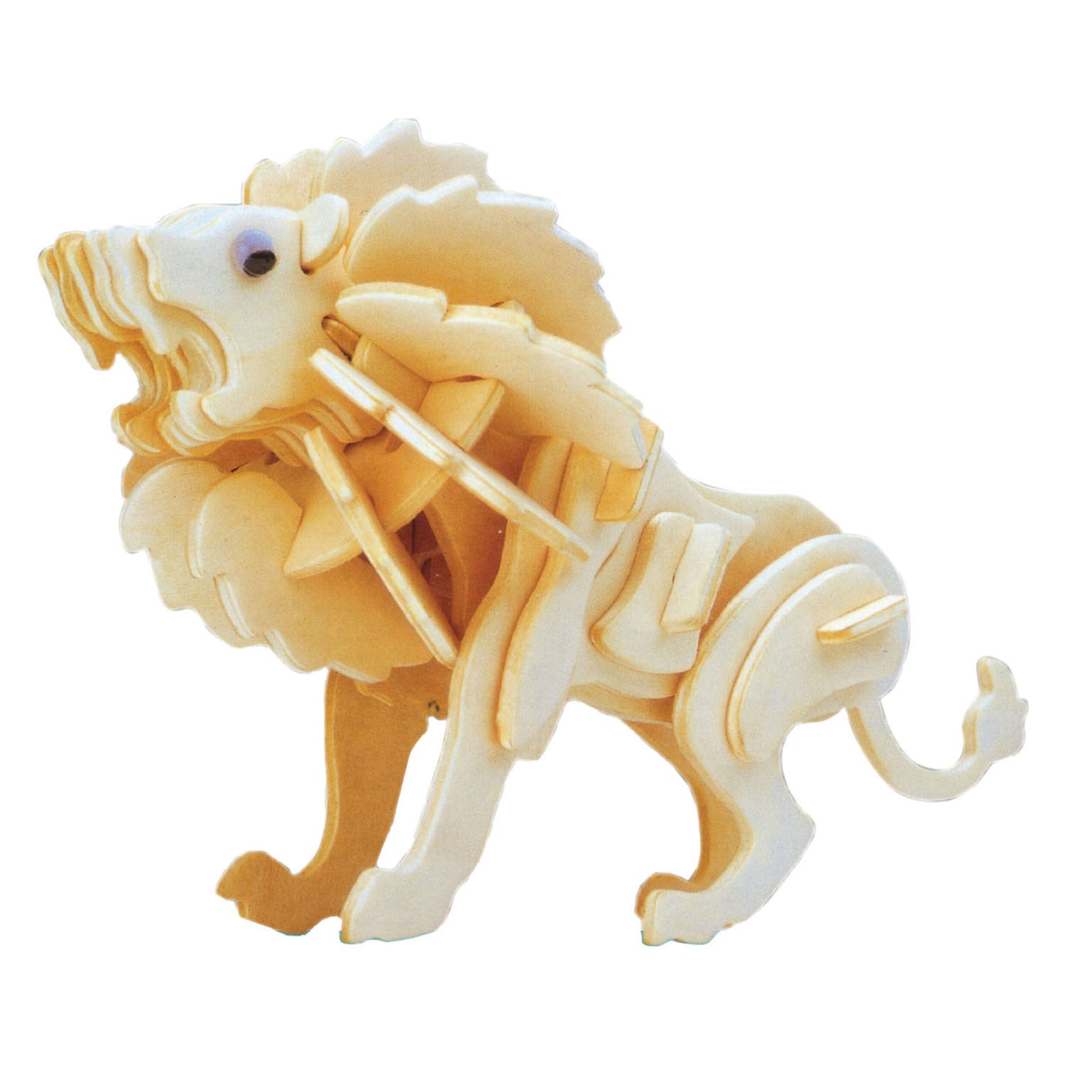 Houten bouwpakket van 46 onderdelen voor het bouwen van een 3D leeuw. Het gebouwde model is 24 x 95 x 10,5 centimeter groot en kan indien gewenst nog beschilderd worden. Gemaakt van 100% niet-giftig hout.