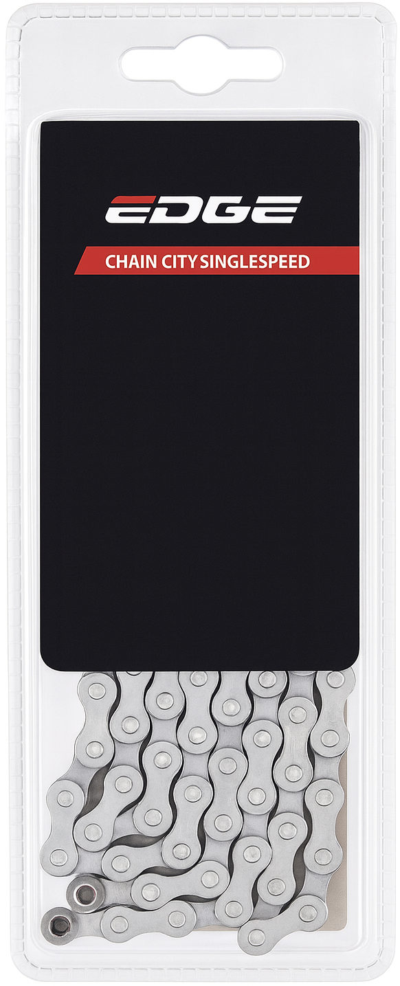 De Edge City ketting Anti-roest is een kwalitatief hoogwaardige fietsketting met een milieuvriendelijke anti-roest coating. Deze ketting is speciaal ontworpen voor stadsfietsen zonder versnelling en fietsen met een naafversnelling van SACHS of Sturmey Archer.