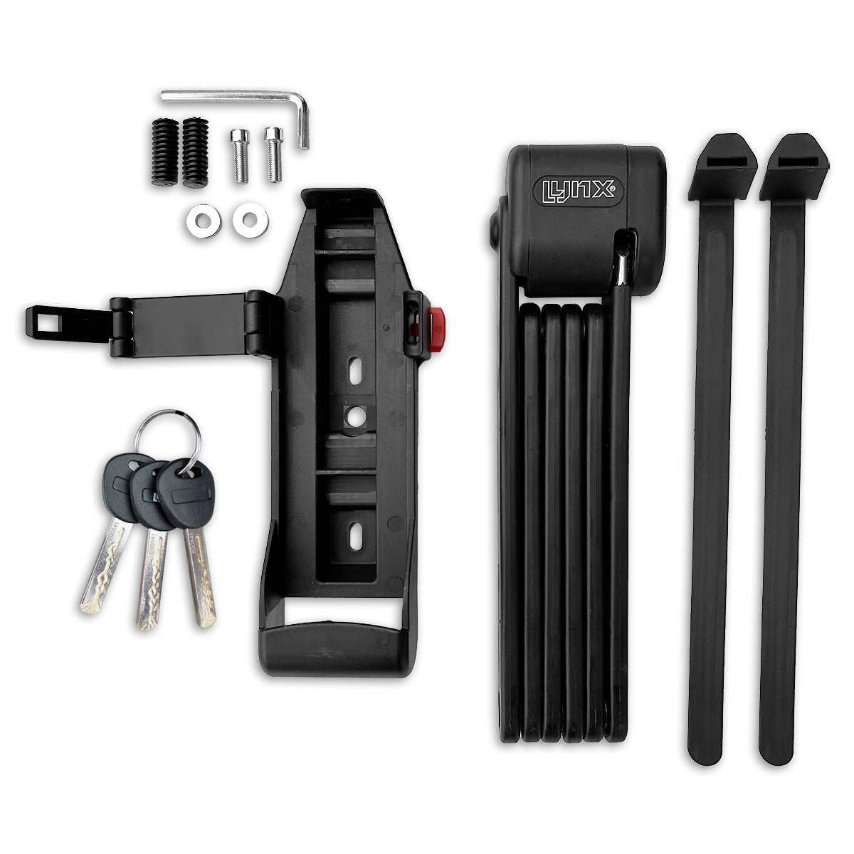 Het Lynx Pivot vouwslot met ART 2 keurmerk biedt optimale bescherming tegen diefstal van bijv. de fiets, e-bike of fatbike. Dit sterke veiligheidsslot is compact, flexibel en eenvoudig in gebruik. Gemaakt van gehard staal, biedt dit slot maximale bescherming en is het gemakkelijk om verschillende objecten heen te vouwen. Dit Lynx Pivot ART 2 vouwslot wordt geleverd met een opberghouder die aan het fietsframe kan worden bevestigd voor gemakkelijk transport. Het afsluitbare slothuis is voorzien van een cilinder welke bestand is tegen boren en lockpicking. Daarnaast is het materiaal van het vouwslot corrosie werend, water- en stofbestendig. De Lynx Pivot heeft een uitgeklapte lengte van 95 centimeter en weegt slechts 1,2 kilogram. Wordt geleverd met 3 sleutels en alle benodigde materialen om de opberghouder aan de fiets te monteren. Op hangkaart. Het ART 2 keurmerk op de Lynx Pivot, maakt dit vouwslot geschikt voor het afsluiten van een diefstalverzekering.
