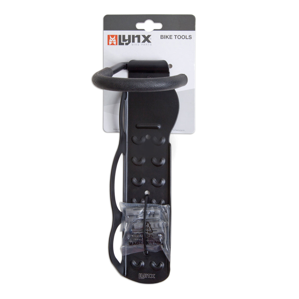 Deze stabiele universele fiets wandhouder/muurbeugel van Lynx is perfect voor het ophangen van vrijwel elk type fiets aan de muur. De fiets wordt eenvoudig opgehangen aan de muurbeugel door het voorwiel aan de haak te hangen. De haak is voorzien van een beschermende rubberen laag om beschadigingen te voorkomen.