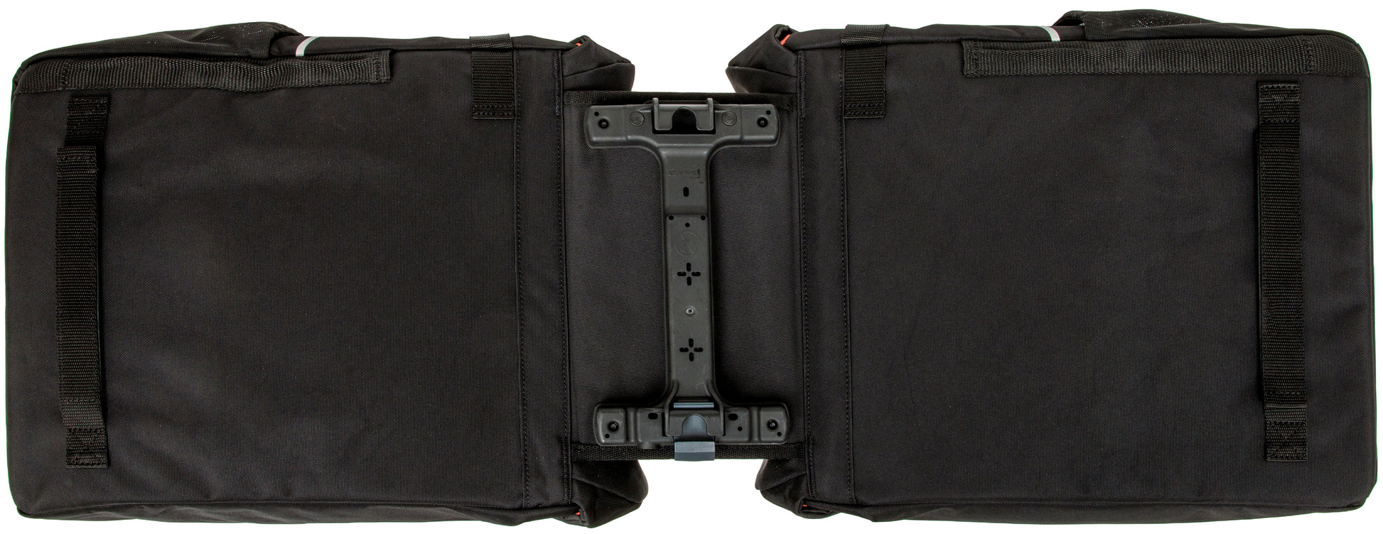 Deze populaire tas is vernieuwd en heeft een frisse look gekregen. Kan iets dat al heel goed is, nóg beter worden? Wij denken van wel! De Vigo Double is een degelijke dubbele fietstas met een sportieve uitstraling. De kleuraccenten op de tas geven de tas een frisse look. Met een handig formaat is deze moderne tas perfect voor dagelijks gebruik. Deze tas is geschikt voor tassen met een Racktime 2.0 bagagedrager. De dubbele tas beschikt over 2 hoofdvakken en 3 extra vakken. Vigo is gemaakt van gerecycled polyester, een bewustere keuze. De bijgeleverde regenhoes zorgt ervoor dat alles droog blijft. Praktisch en sportief design Wie veel kilometers maakt, mag hoge eisen stellen aan een fietstas. De Vigo Double heeft veel praktische kenmerken. De hoofdvakken van de tas sluit je met een aansnoersluiting. Vervolgens sluit je de klep eenvoudig met kliksluitingen. Deze sluitingen van deze tas openen en sluiten extra makkelijk. Fijn als je je handen vol hebt met boodschappen, of last hebt van bijv. reumatische klachten. De tas heeft 2 ruime hoofdvakken, elastische zijvakken en 3 extra vakken. Zo neem je alle spullen goed georganiseerd mee. Eenvoudige bevestiging met Racktime 2.0 De fietstas is uitgerust met een geïntegreerde Racktime Snapit 2.0 adapter. Kijk dus even goed of jij een bagagedrager met Racktime 2.0 systeem op jouw fiets hebt, anders past de tas helaas niet. In 1 handbeweging klik je de fietstas vast, of maak je hem los. Met deze Racktime-adapter wordt het voor jou nog makkelijker om de fietstas te gebruiken. In 1 handbeweging klik je de fietstas vast, of maak je hem los. Het voordeel van het Racktime 2.0 bevestigingssysteem is dat de tas altijd goed bevestigd is op de bagagedrager. Daardoor blijft de tas goed zitten en hangt deze altijd mooi recht. Je kunt de fietstas extra vastzetten aan de zijkant van de bagagedrager met een klittenband riempje. Veilig onderweg De Vigo Double is stevig en vormvast door de kunststof platen in de bodem en achterwand. Daarnaast is de fietstas extra verstevigd met foam. Daardoor blijft de tas goed in vorm en kun je makkelijk je spullen in de tas stoppen. De dubbele Vigo fietstas is gemaakt van waterafstotend gerecycled polyester. Doordat de klep over de tas heen valt, is de tas goed waterafstotend voor kleinere regenbuien. Deze tas wordt geleverd mét bijpassende regenhoes. Zo heb je deze altijd bij de hand en maak je de tas 100% waterdicht. De tas is afgewerkt met reflectie voor extra veiligheid in het donker. Op de zijkanten van de tas zitten bandjes waar je eenvoudig een ledlampje op kunt bevestigen voor extra zichtbaarheid Afstandhouder Je kunt bij de tas een New Looxs afstandhouder gebruiken, deze is separaat te koop. Deze voorkomt dat de tas tegen het wiel aan komt. Je steekt de afstandhouder in de insteekstrips op de achterkant van de fietstas. Dan blijft de tas, ook zwaar beladen, altijd netjes recht op de bagagedrager hangen. New Looxs tas Double Vigo black orange, 2x 20 liter, 30 x 19 x 40 cm. Hoofdvak met 3 extra vakken Inclusief regenhoes,Inclusief voorgemonteerde Snapit 2.0 adapter Adapter is geschikt voor Racktime 2.0 bagagedragers Reflecterende bies Inhoud: 40 l (2x 20 l), afmetingen (L x B x H): 30,0 cm x 19,0 cm x 40 cm, polyester Waterdicht, met kliksluiting, voorgemonteerde Snapit 2.0 adapter, geschikt voor Racktime 2.0 bagagedrager, inclusief regenhoes, hoofdvak en drie extra vakken, met reflectoren Breedte 19.0 cm Hoogte 40.0 cm Lengte 30.0 cm Systeem Snap-it 2.0 Type/soort Artikel