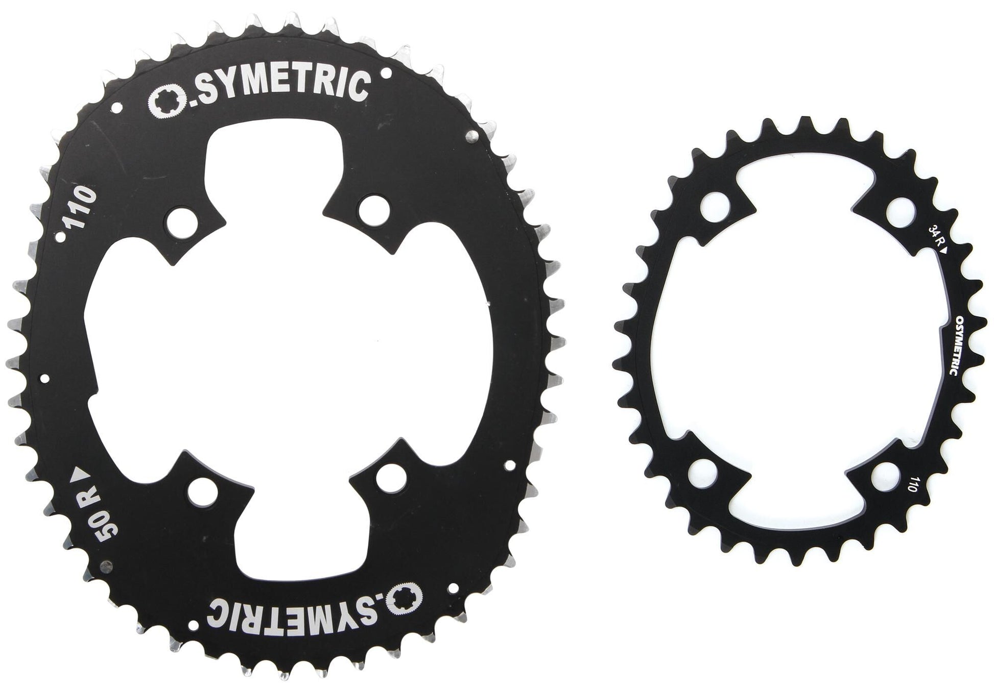 4-armig, 110 mm boutcirkel, aluminium 7075 T6, zwart SB-pakketgeschikt voor Shimano Ultegra FC-6800, Dura Ace FC-9000 Sets De revolutionaire Kettingbladen van O.Symetric Niet-cirkelvormige vorm voor 10% meer prestaties, betere acceleratie. Vermindering van de melkzuurproductie van de spier met 10%, geen andere kettinglengte nodig. Aantal tanden 34 , 50 Bevestiging 4-gaats Gatafstand 110 mm Geselecteerde groep Dura-Ace , Ultegra Hoofdkleur zwart Schakelstanden achter 11-fach Type/soort Artikel