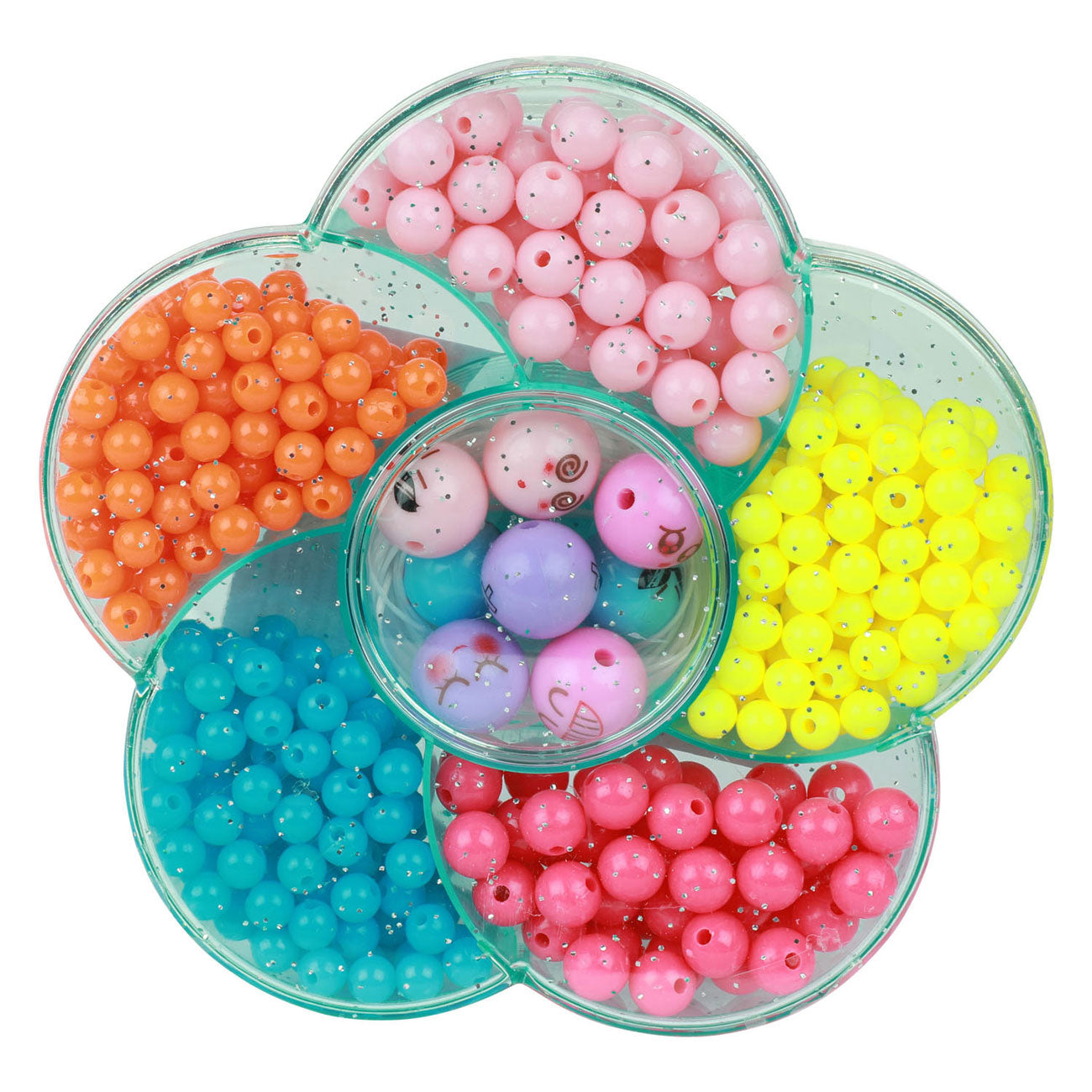 Kralensetje voor het maken van je eigen armbanden. In kunststof doosje in de vorm van een bloem, vlinder of appel. Inclusief draad en verschillende vormen en kleuren kraaltjes. Geschikt voor kinderen vanaf 3 jaar oud.