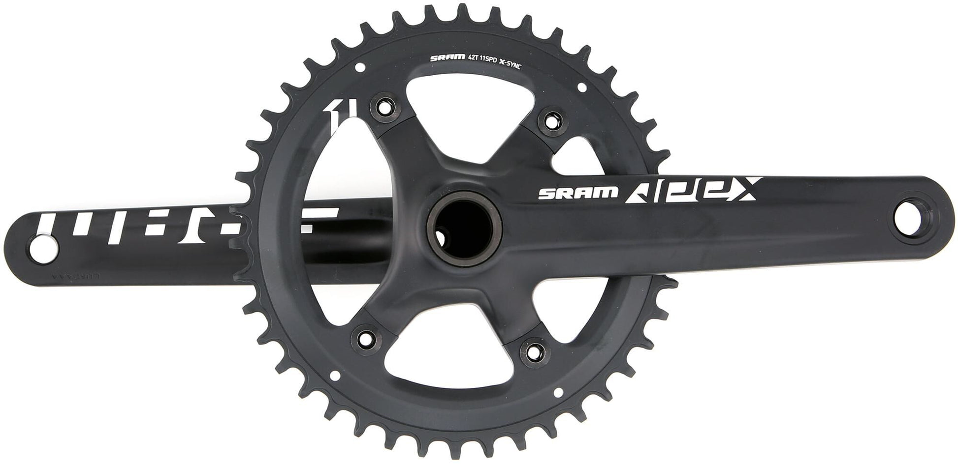 42 tands, 1-speed, zonder bracketset, zwart 11-/10-speed compatibel, cranks en X-Sync kettingblad van aluminium, gatafstand 110 mm, kettinglijn 45,5 mm Crankstel van SRAM De Apex 1 crank van SRAM is verkrijgbaar in 170,0 mm. Omdat de crank gemaakt is van aluminium, gaat hij bijzonder lang mee en bespaart hij gewicht. De crank is uitgerust met een kettingblad. Hij past op de GXP Traplagers en de 10- en 11-speed aandrijving van je fiets. Aantal kettingbladen 1 Cranklengte 170.00 mm Hoofdkleur zwart Kettingblad groot 42 inch Systeemcompatibiliteit 10-speed , 11-speed Trapas GXP Type/soort Artikel Variatie crankstel