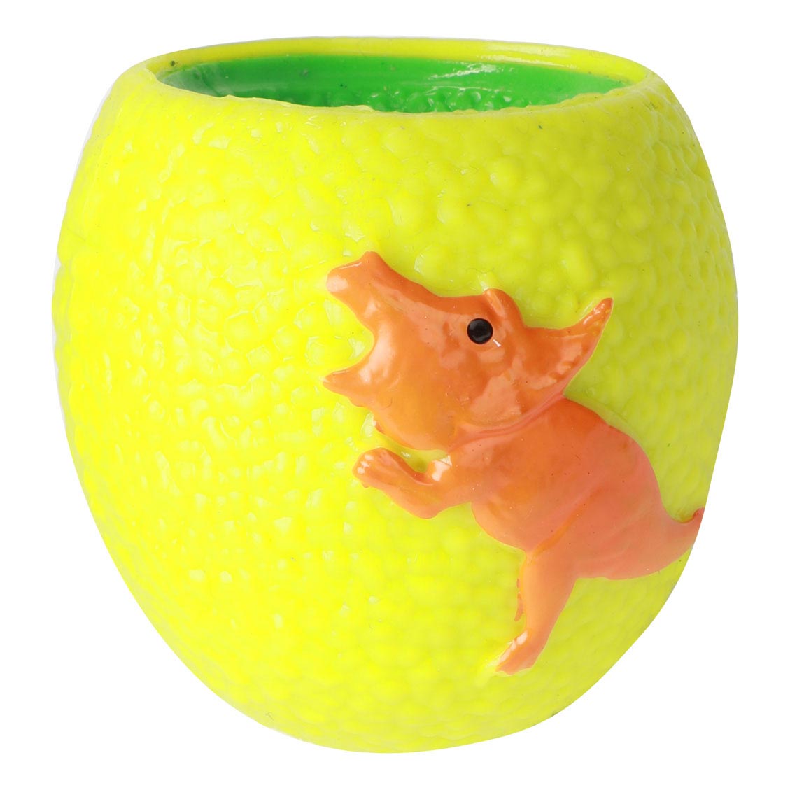 Een zacht synthetisch rubberen ei waar je niet alleen in knijpt omdat het zo lekker rustgevend is maar ook omdat er dan, heel verrassend, een dinosaurus tevoorschijn komt. Er zijn 3 verschillende soorten. Toi Toys World of Dinosaurs Knijpei pop-out dino
