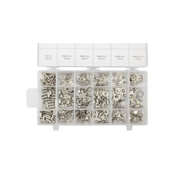 De TOPGEAR Adereindhuls oog ass. 340-delig is een uitgebreid assortiment met 3 soorten adereindhulzen en 15 maten ogen. Deze doos bevat: