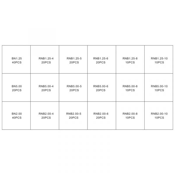 Uitgebreid assortiment met 3 soorten adereindhulzen en 15 maten ogen