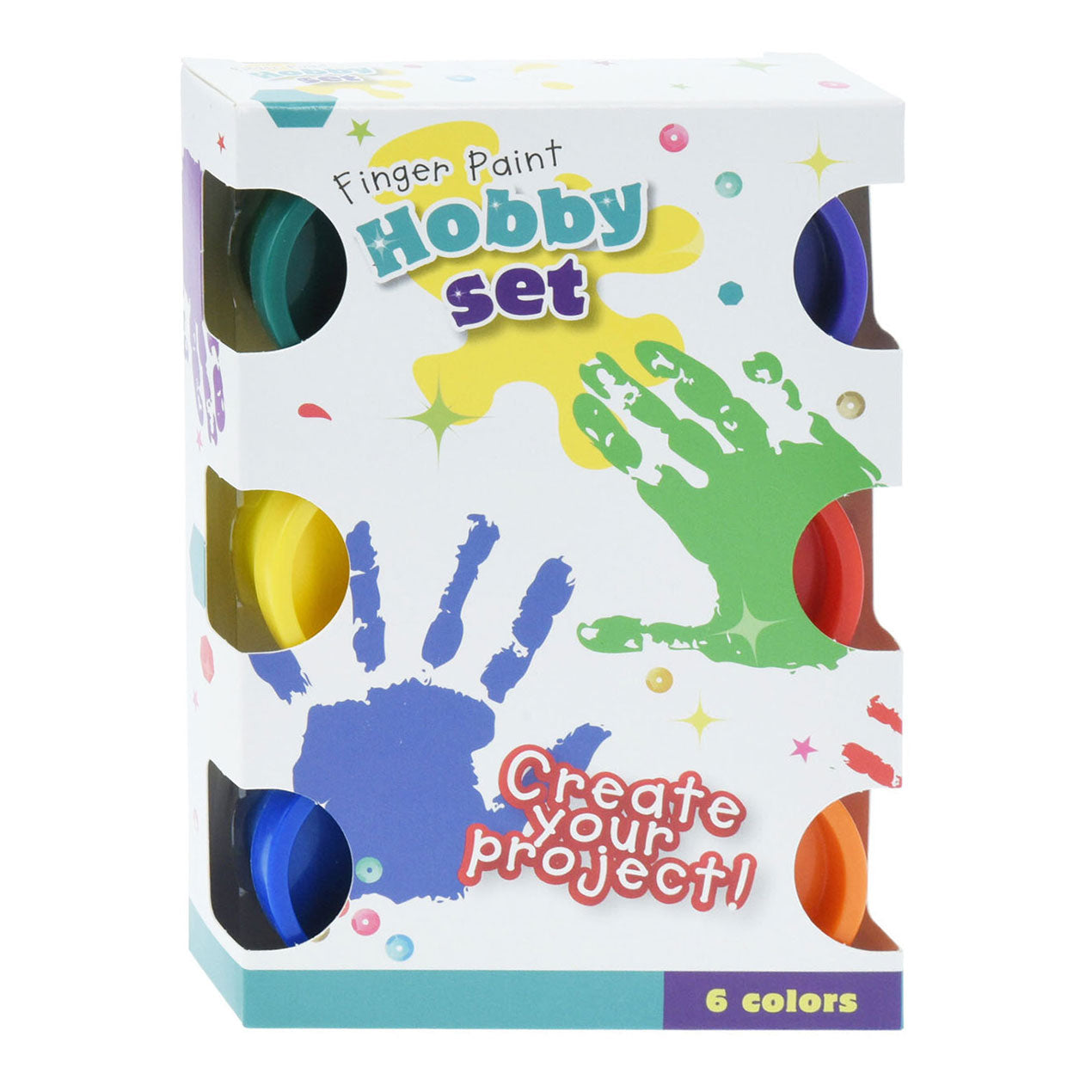 Vingerverfset met 6 potjes verf, elk met een inhoud van 30ml.