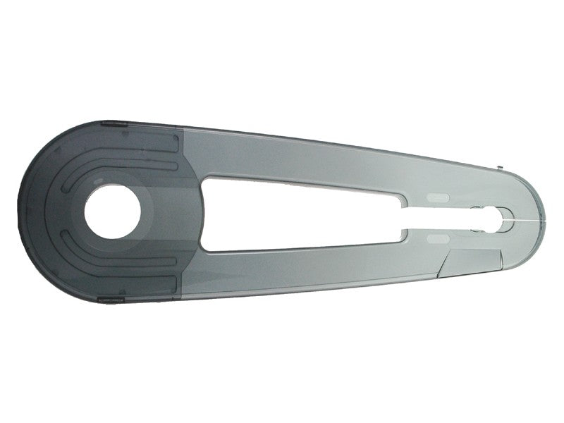 De Axa VS Benjamin kettingkast is geschikt voor 24" fietsen en biedt optimale bescherming voor de ketting. Met een lengte van 60 cm en een hoogte van 19,5 cm is deze kettingkast geschikt voor kinderfietsen. Het transparante kunststof materiaal zorgt ervoor dat de ketting volledig is afgeschermd, waardoor voeten en kleding niet beklemd kunnen raken. Daarnaast verlengt het ook de levensduur van de ketting doordat vocht en vuil minder kans krijgen om de ketting te beschadigen. De kettingkast wordt geleverd inclusief bevestigingsmateriaal en is eenvoudig te monteren met een achterwand en achterbeugel. Specificaties: - Geschikt voor wielmaat: 24" - Kleur: Transparant - Materiaal: Kunststof - Lengte: 60 cm - Hoogte: 19,5 cm - Diameter crankgat: 6 cm - Gewicht: 500 gram - Geschikt voor 42 tands tandwielen - RC maat: 422-445 mm - Materiaal: Polycarbonaat (dark smoke) - Inclusief montagemateriaal